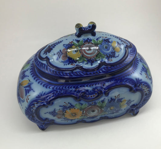 Portuguese Ceramic Soup Tureen with Lid, Hand-painted Alcobaça Pottery