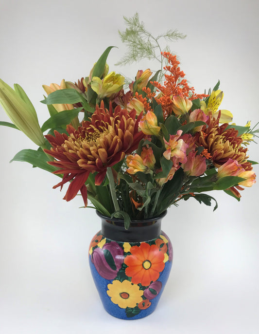 J. Mrazek Czechoslovakian Pottery Vase Floral, Peasant Art, 1920s, Blue