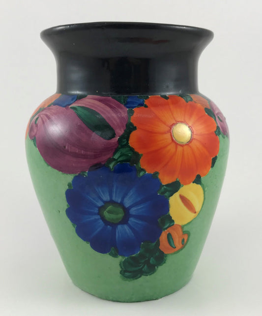 J. Mrazek Czechoslovakian Pottery Vase Floral, Peasant Art, 1920s Green