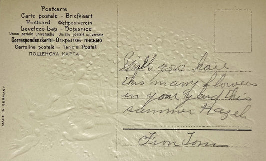 Edwardian Embossed Floral Postcard, 1909 New Year Greetings