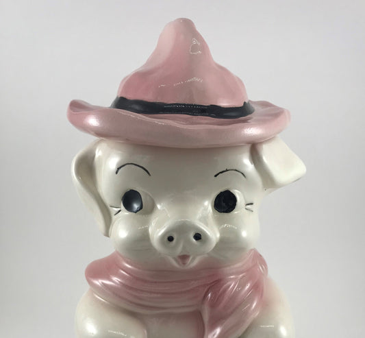 Piggy with a Pink Hat Cookie Jar, Mid-century Ceramic