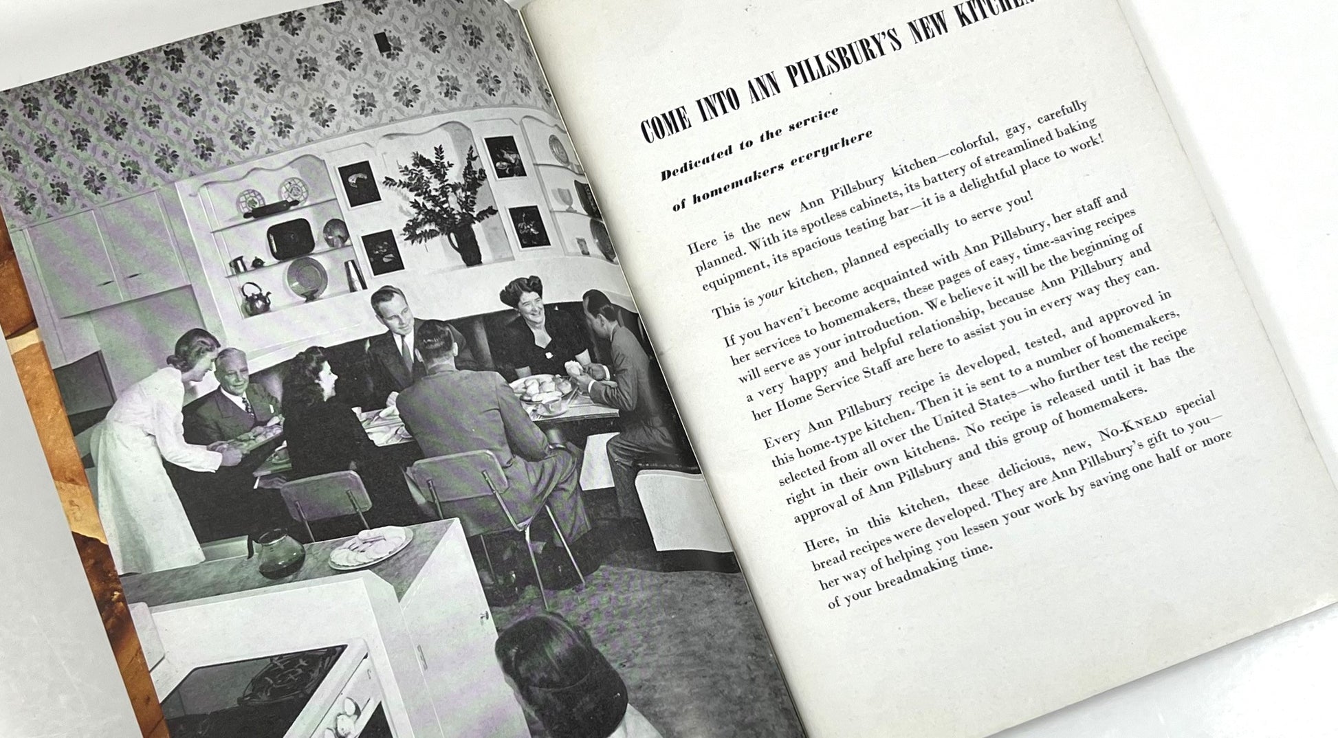 Published in 1946 by Pillsbury Mills, Inc., this advertising cookbooklet is filled with recipes for loaf breads and rolls as well as brunch, entree, appetizer, and dessert breads for every menu.