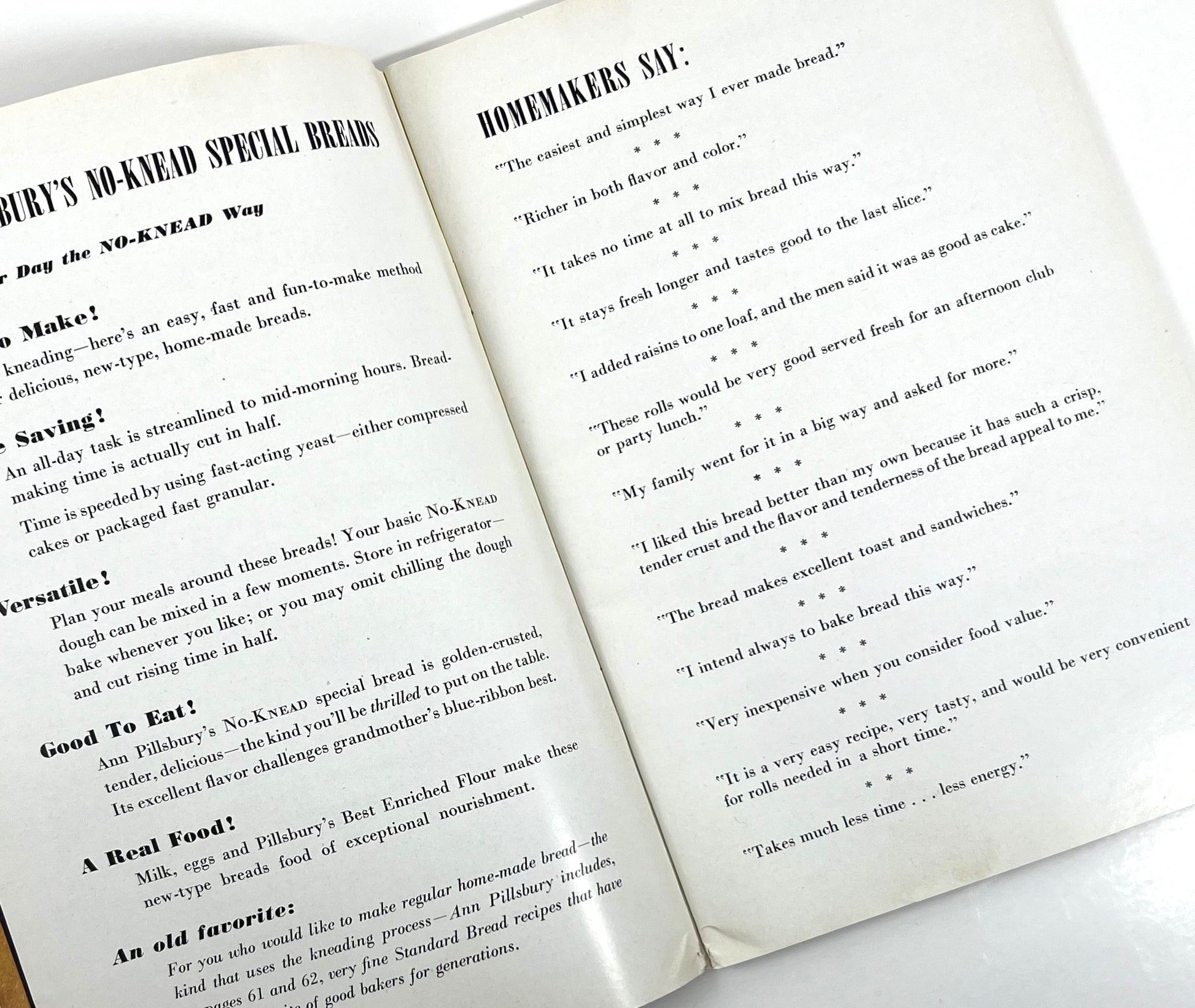 Ann Pillsbury is acknowledged as the Director of Pillsbury's Home Service Center with a "dedication to the service of homemakers everywhere" and she offers tips for no-knead breads that are: