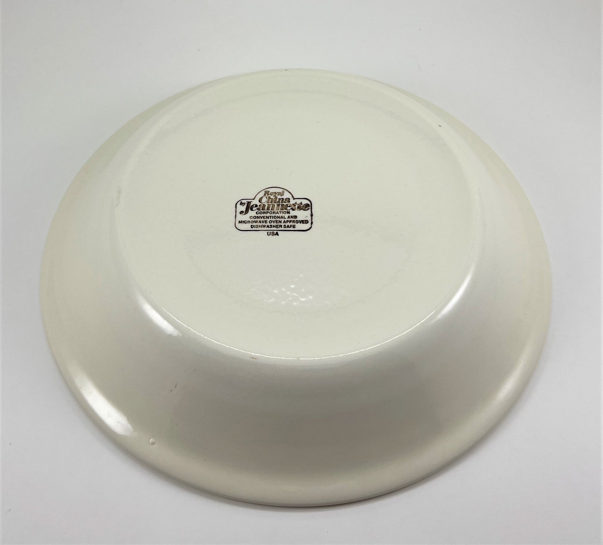 Royal China by Jeannette manufactured a series of ceramic pie plates with recipes, including strawberry, pecan, cherry, blueberry, peanut butter, lemon meringue, pumpkin, chocolate cocoa, and of course, apple.