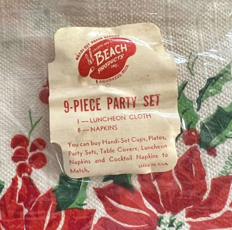 Christmas Paper Napkin and Tablecloth Set, 1950s Beach Products