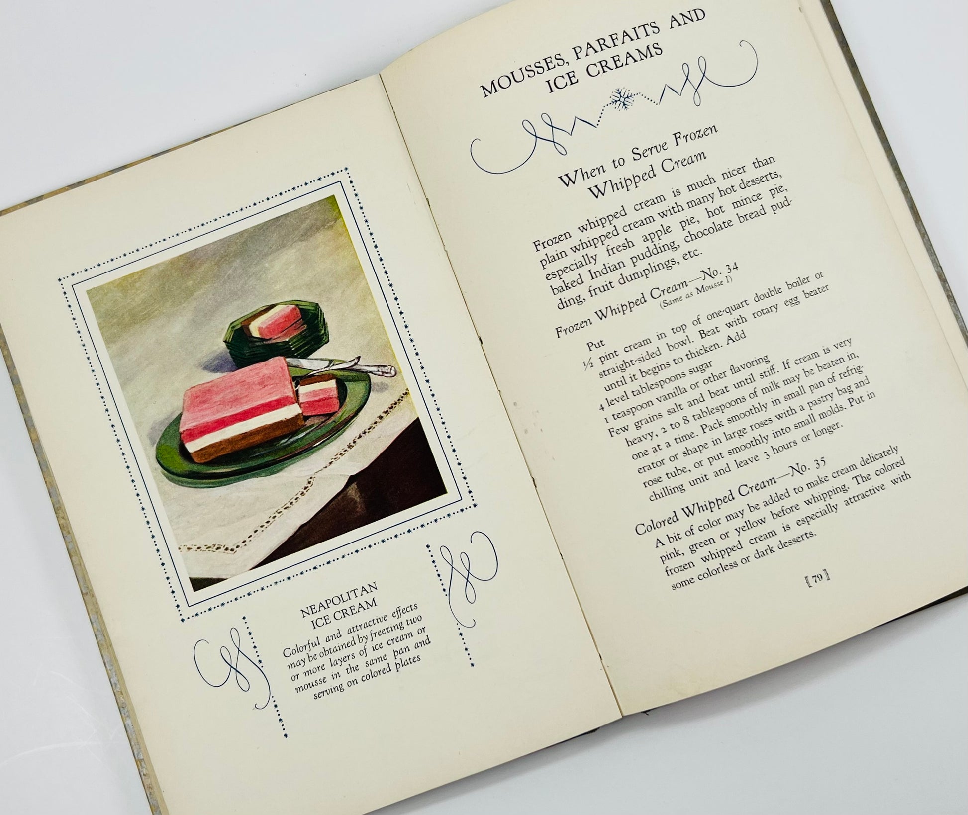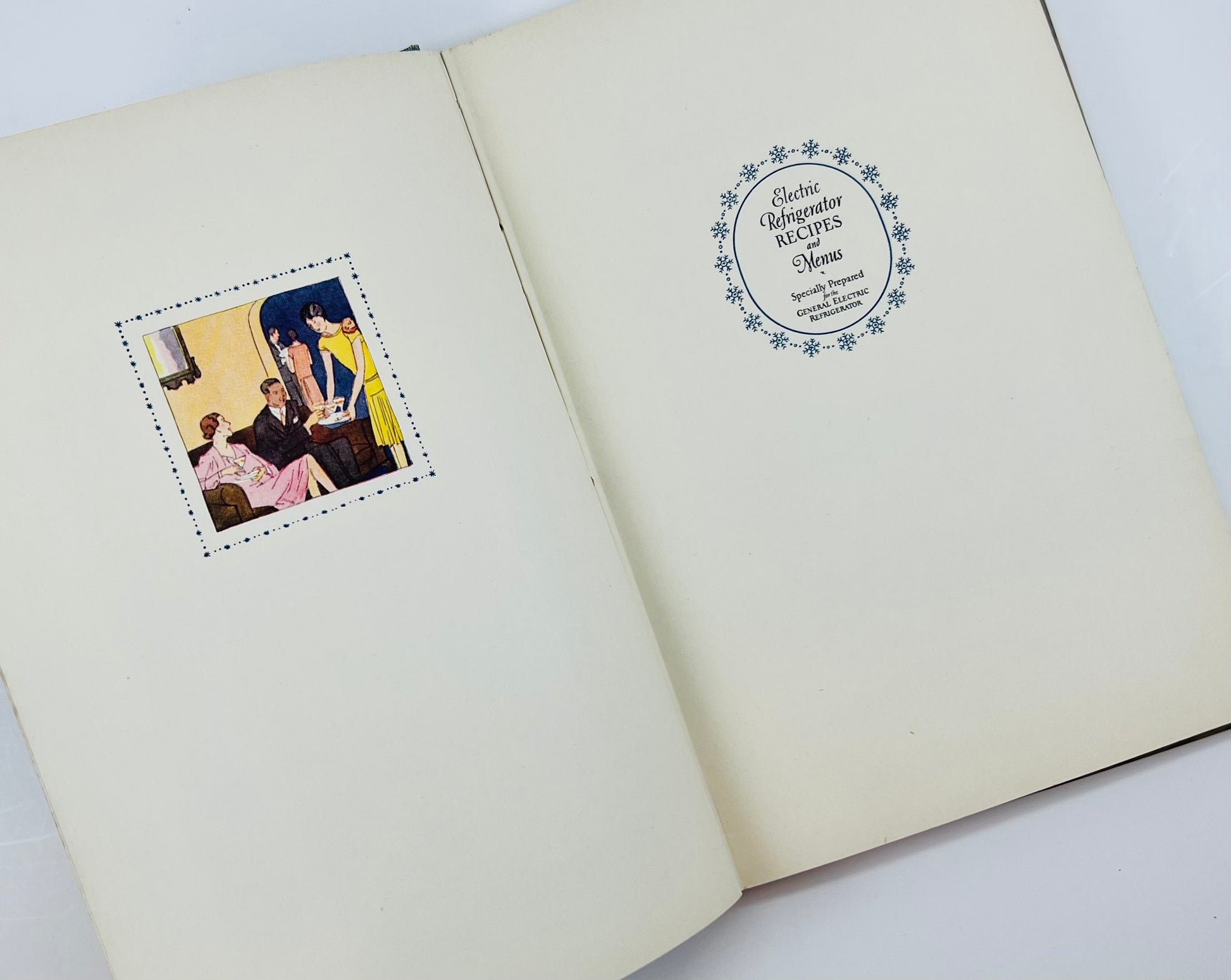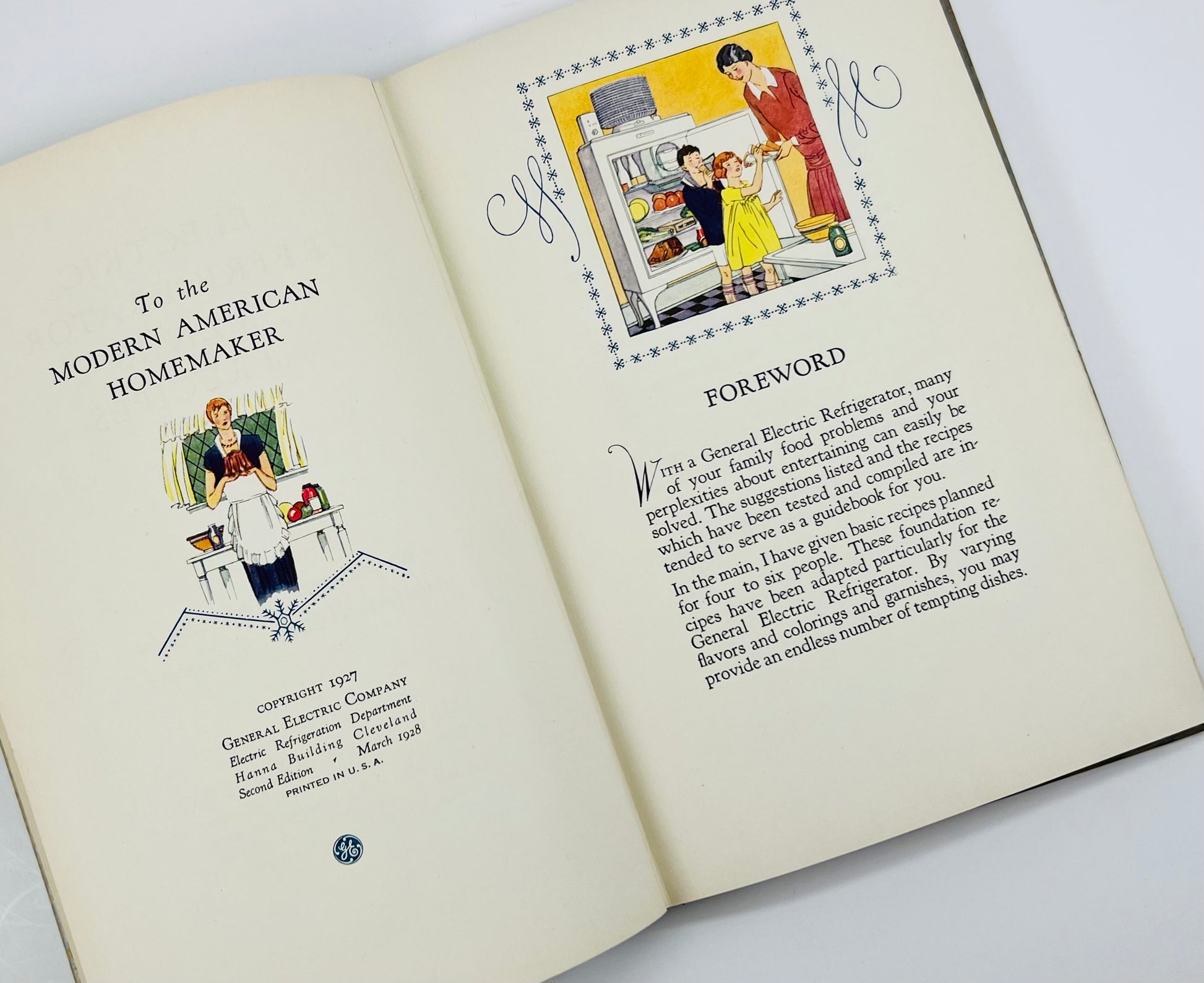 This copy is the second printing, dated 1928. Originally published by the General Electric Company in 1927, the cookbook is dedicated "To the Modern American homemaker. "To many people electric refrigeration is still such a novelty that they scarcely realize the range of its possibilities. It is almost like having an Aladdin's lamp and not knowing the right way to rub it." Imagine a time when having a refrigerator was not the norm and when companies like General Electric informed the public that "the owning of such a refrigerator is a form of health and happiness insurance which every homemaker in America should have the privilege of enjoying"! The introduction continues to describe all the benefits of refrigeration and methods of freezing as well as general directions for the use and care of a refrigerator.