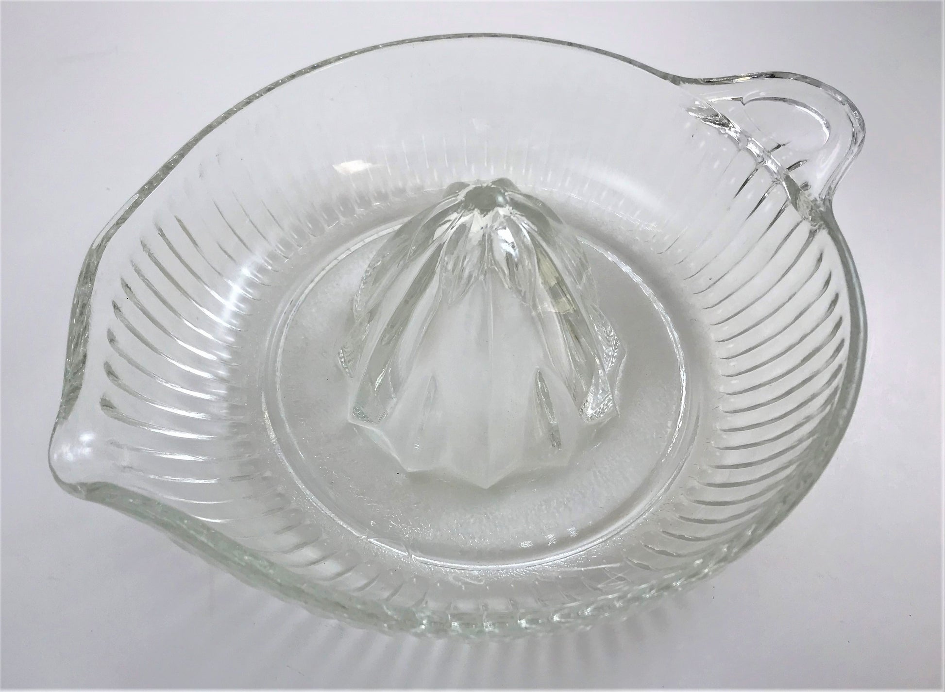 Glass Orange Juicer, Mid-century Pressed Glass with Handle and Pouring Spout