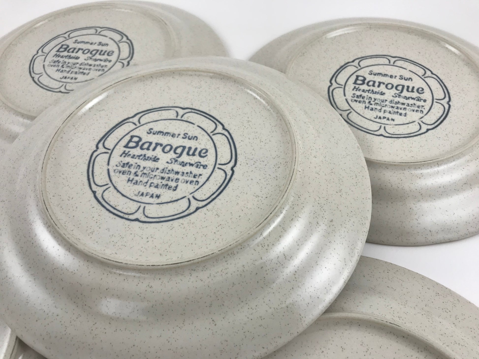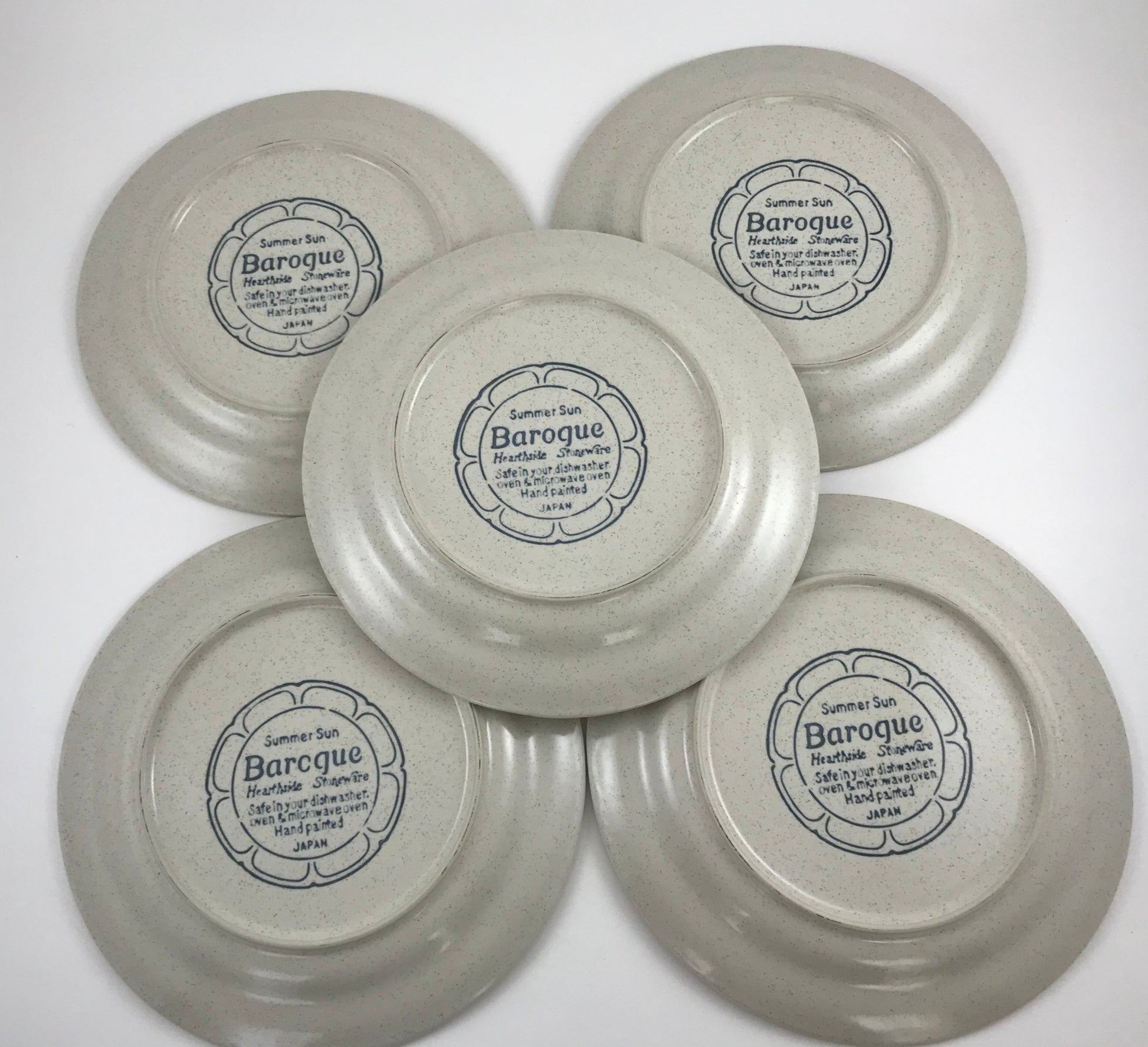 Hearthside Pottery Summer Sun Baroque pattern, set of five dinner plates.