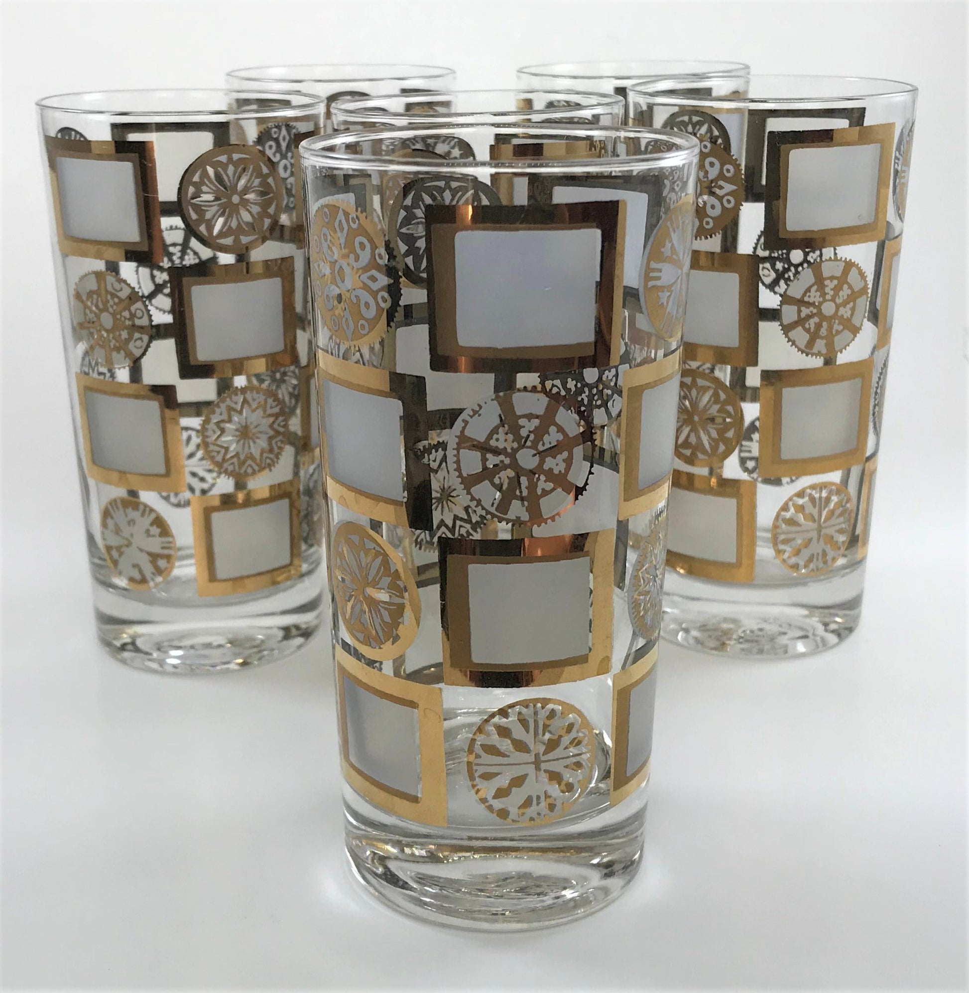 A highball is a drink that consists of a small quantity of a spirit mixed with a larger quantity of a mixer and ice, served in a tall glass. A set like this would have found its place in many home bars across mid-century America, perfect for entertaining family, neighbors, and clients alike.