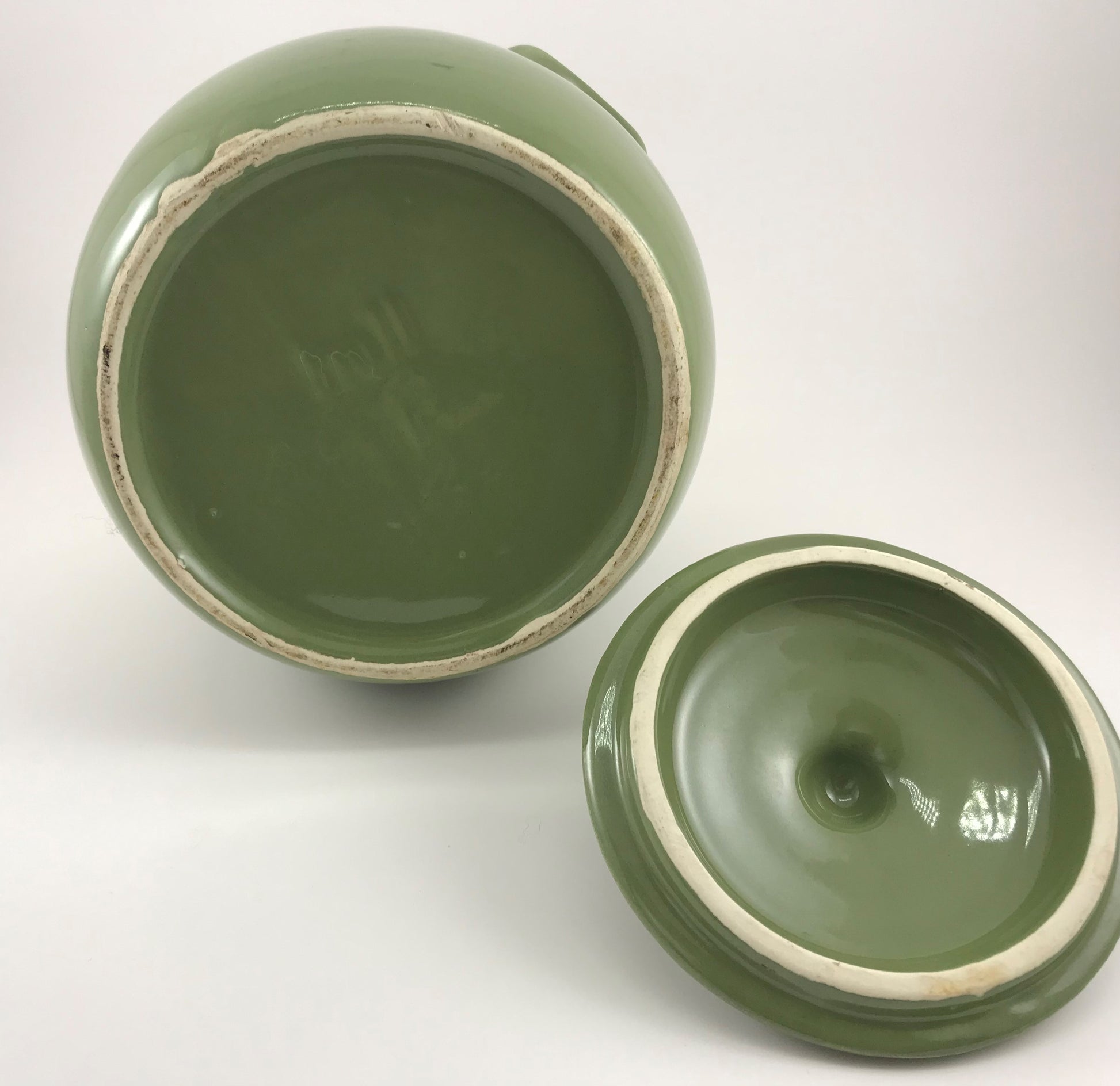 Hull Pottery Cookie Jar, Green Glaze with Lid, 1950s Oven-proof