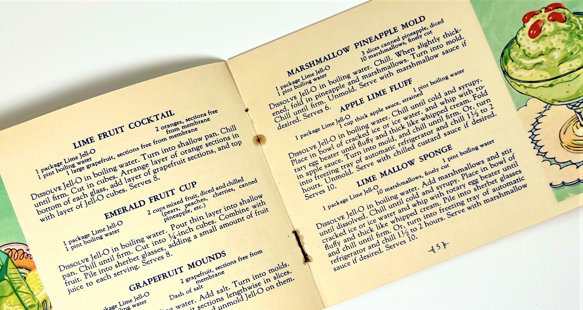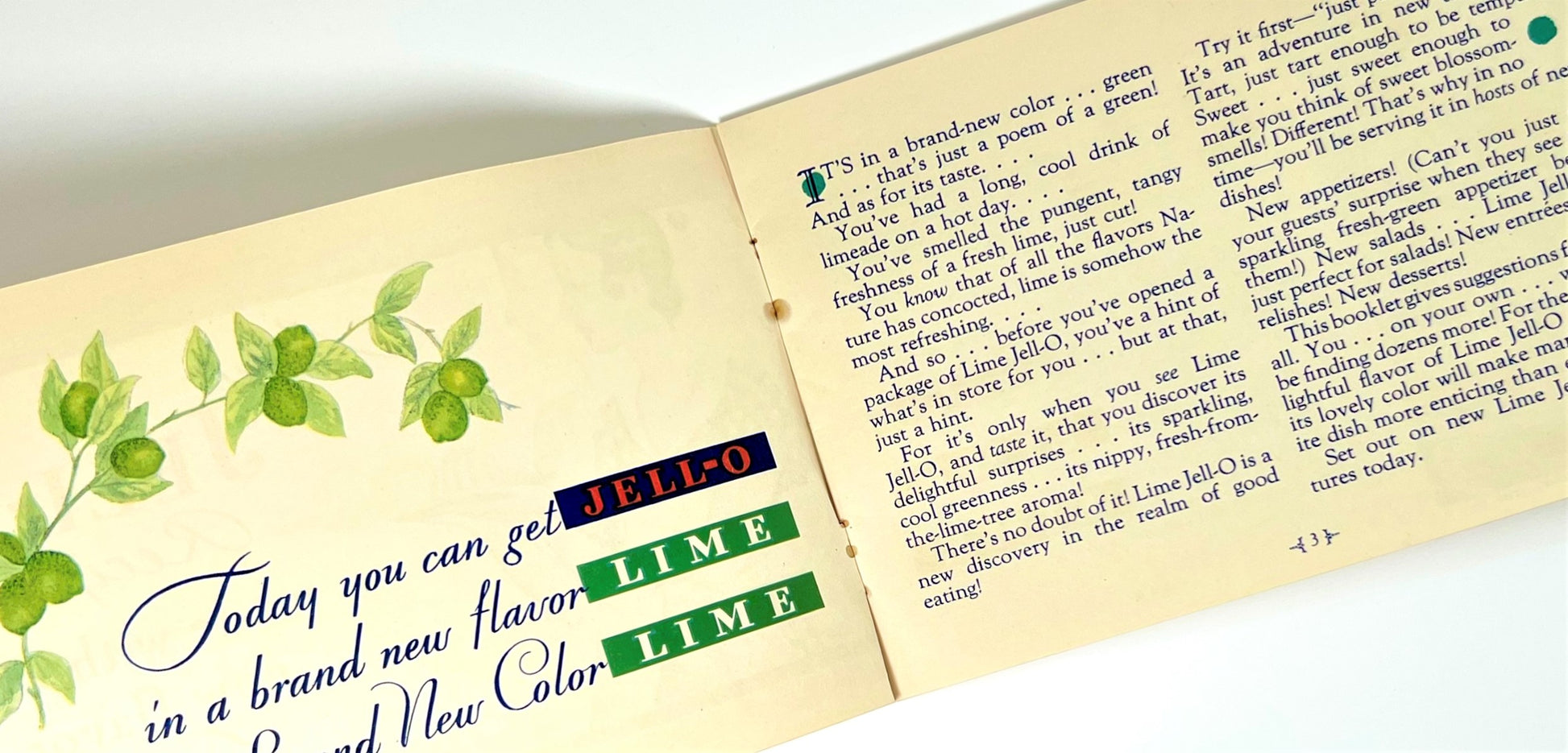 Jell-O Recipe Cookbooklet featuring New Flavor Lime, 1930