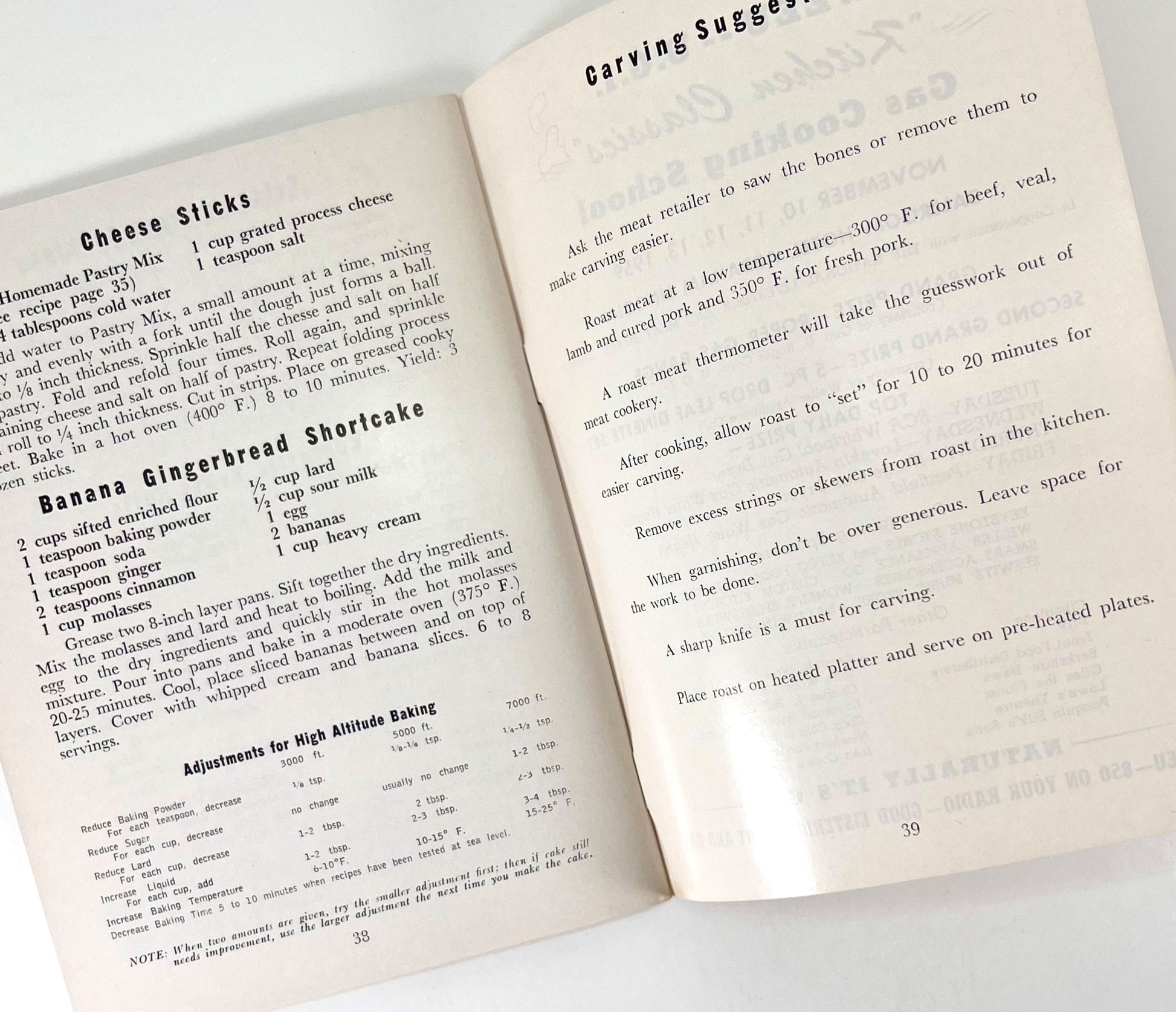 In the 1950s, WEEU Radio in Reading, Pennsylvania partnered with the UGI Gas Company and The National Live Stock and Meat Board to offer in-person "Gas Cooking Schools" in the ballroom of the grand old Hotel Abraham Lincoln. Advertised on the radio and in promotions to UGI customers, the cooking school taught participants how to cook with gas stoves and ovens while offering significant prizes as incentives to attend. Of course, each attendee also received a useful recipe booklet as a reminder of their gas cooking school experience.