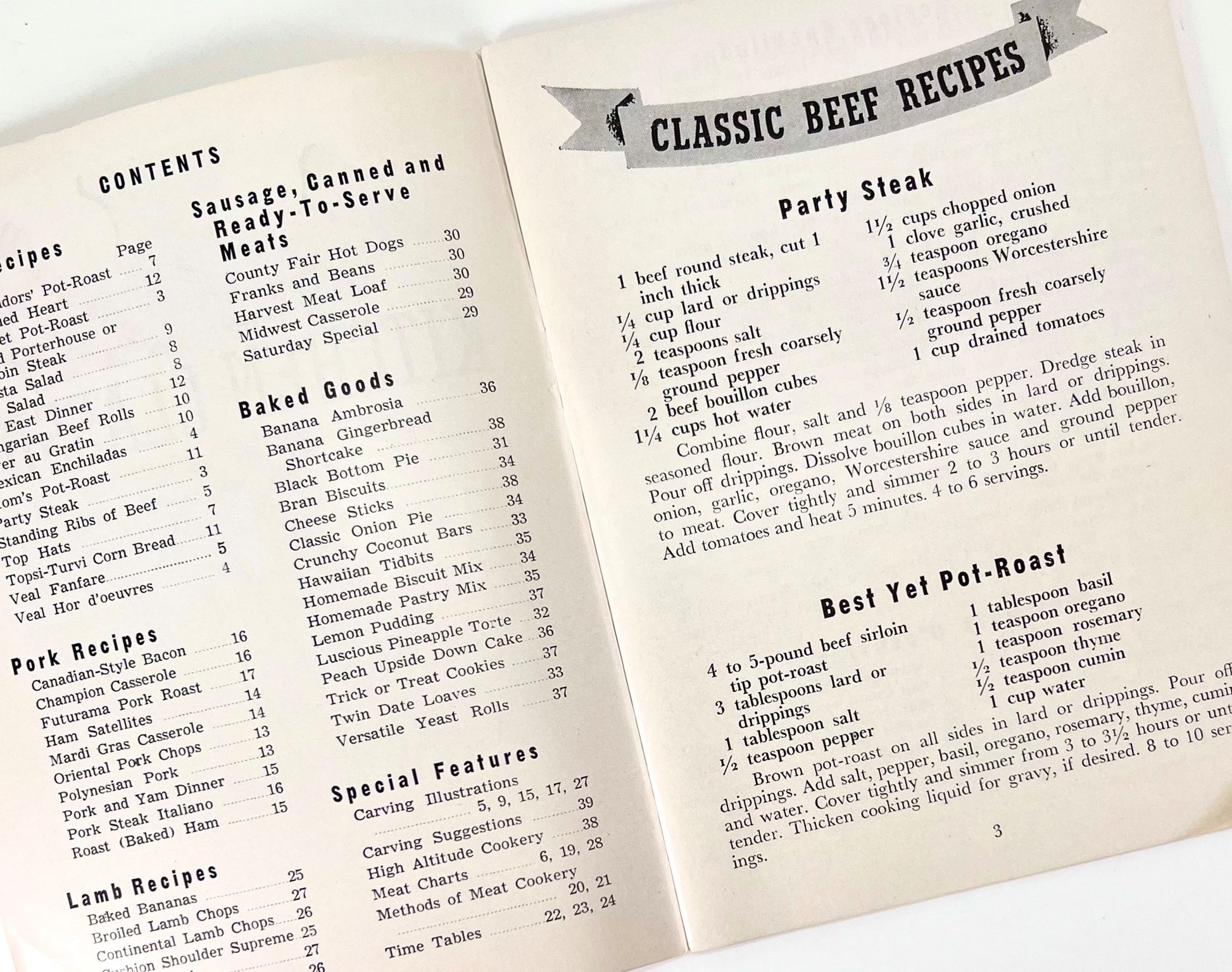 Kitchen Classics Cook Book, 1959 from The National Live Stock and Meat Board, WEEU Radio, and UGI Gas