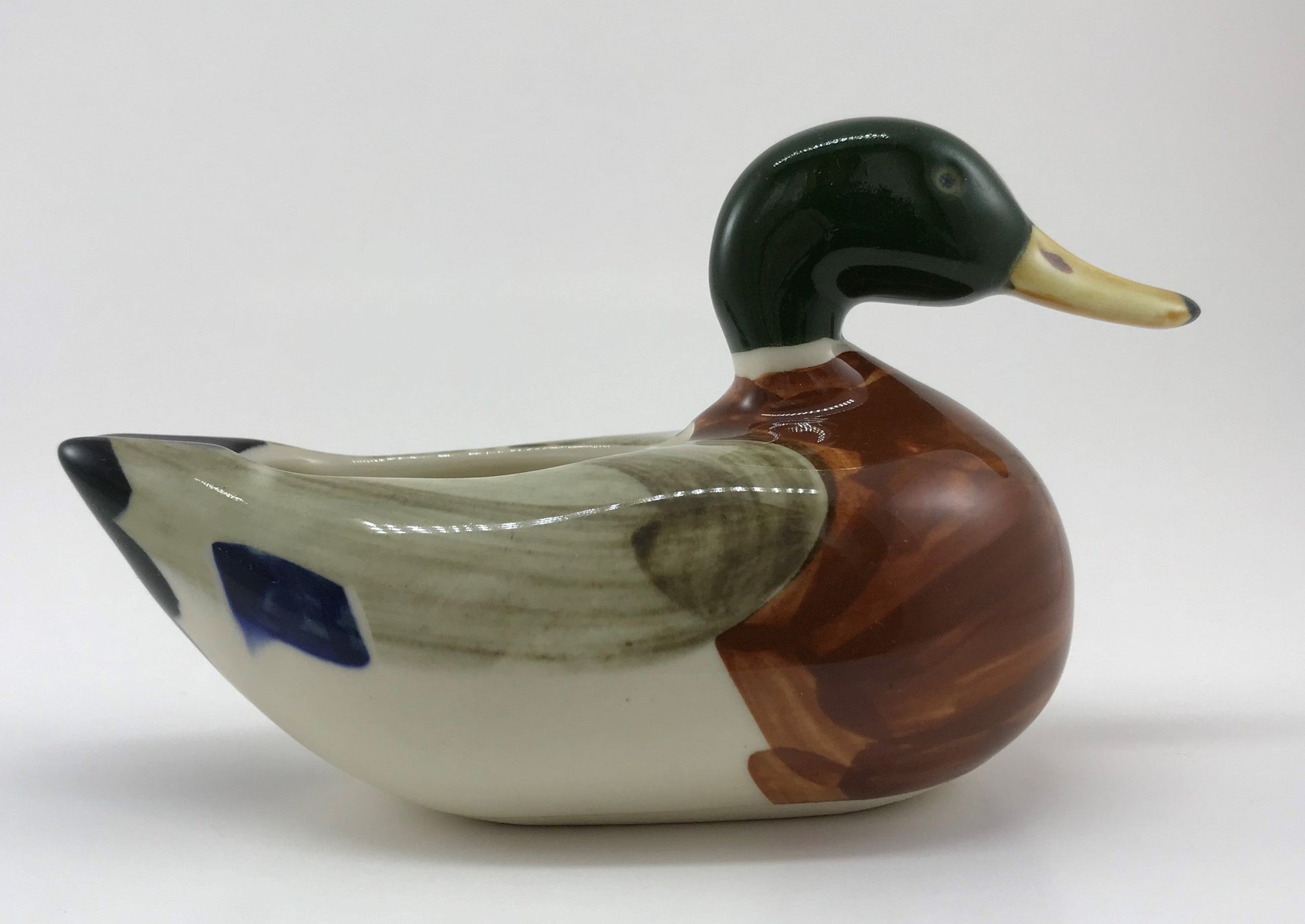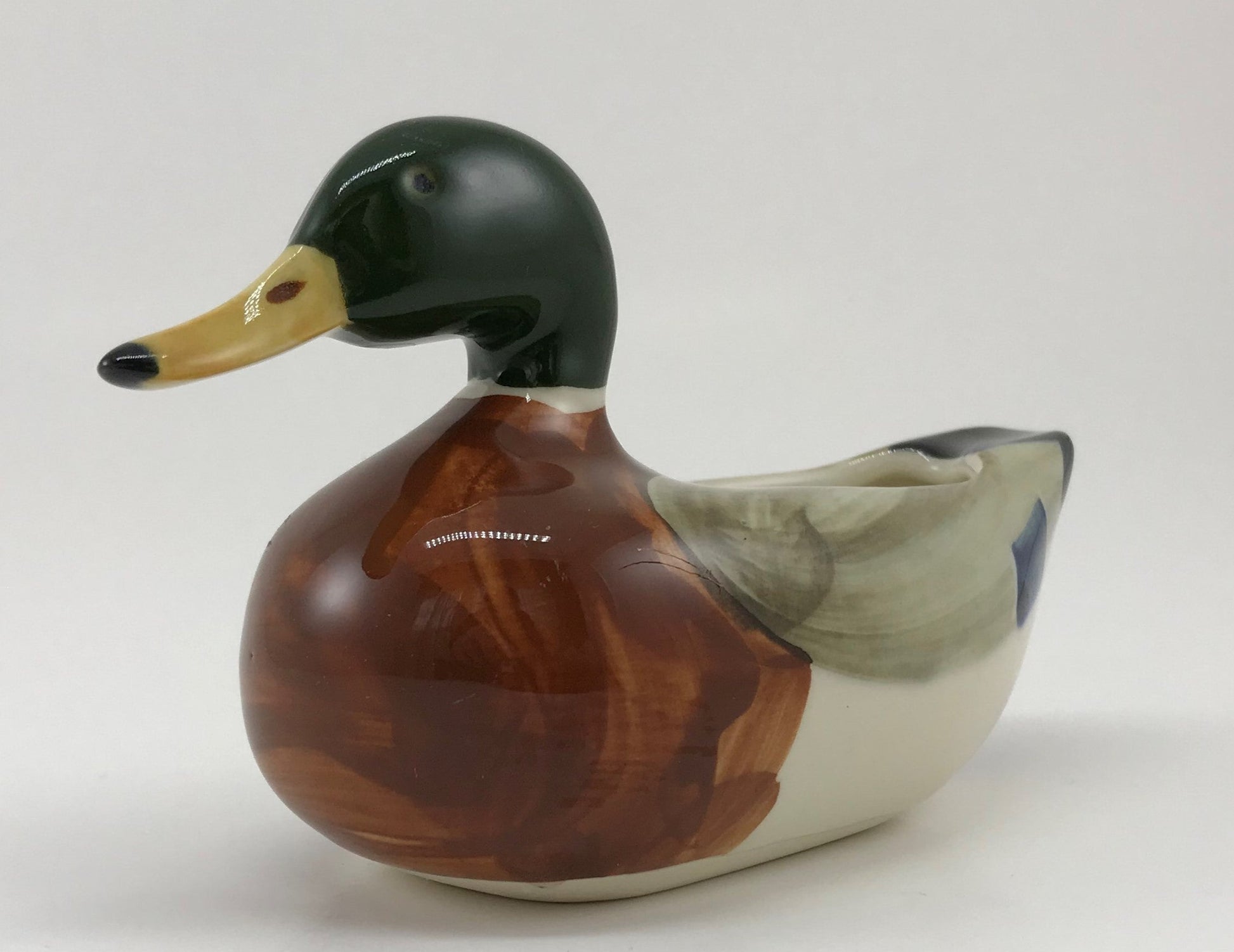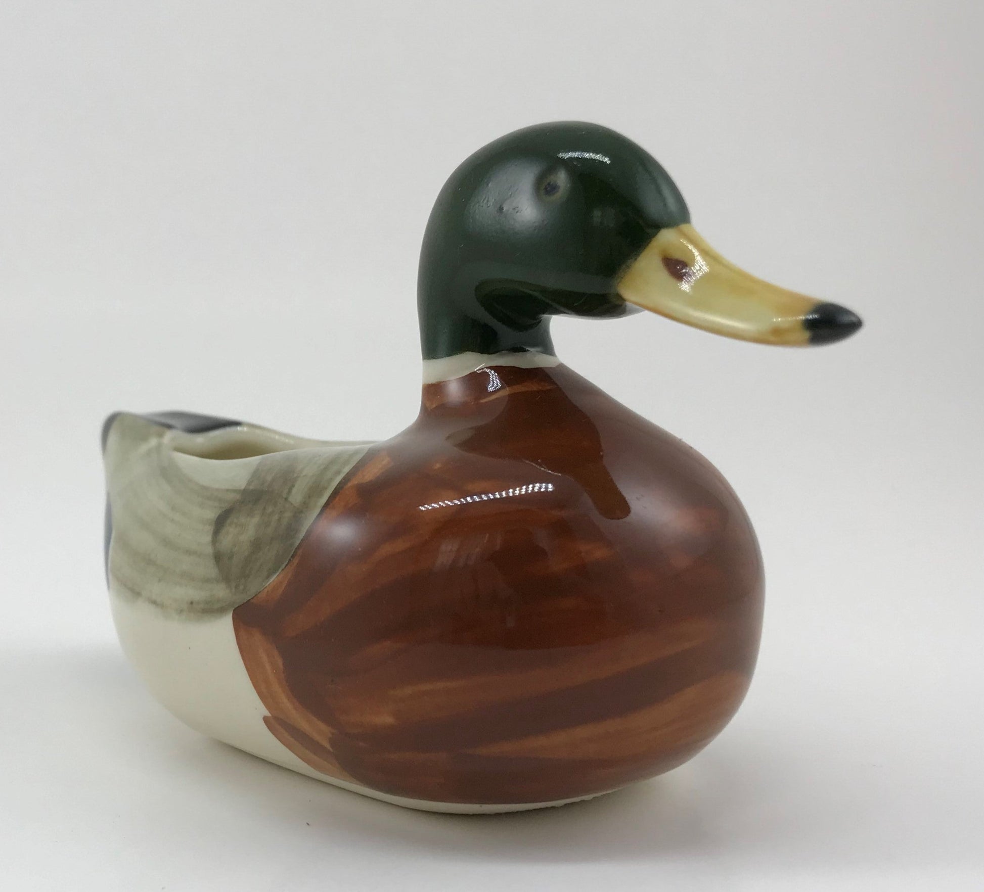 Hand-painted glazed porcelain mallard duck planter by Goss.