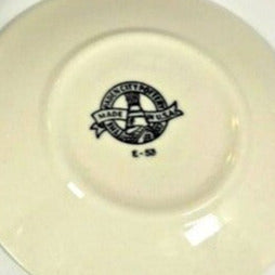 The 1950s saw the introduction of more new lines. The Shenandoah Ware line was made in plain colors with different decorations. This charming mid-century set is painted with the retired Strawberries and Flowers Pattern, PCP 160. The cup diameter is approximately 2 3/8" with a height of 2 1/8" and the saucer diameter is approximately 4 5/8".