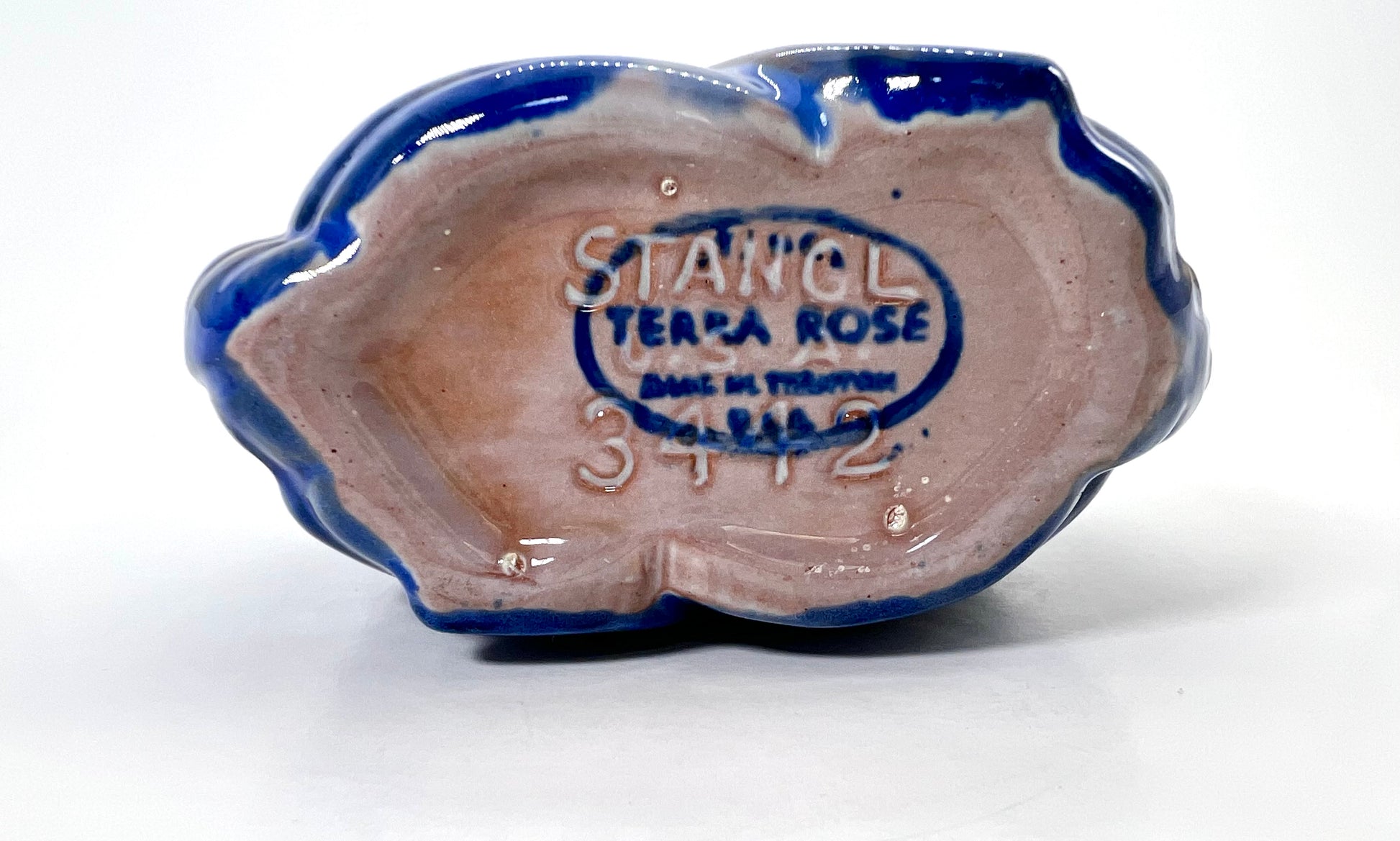 Best known for dinnerware and a line of bird figurines, Stangle Pottery also manufactured decorative housewares such as this lovely leaf vase. After Martin Stangl passed away in 1972, the pottery was sold to Wheaton Industries with production continuing until 1978 when Pfaltzgraff Pottery purchased the right to the Stangl trademark and liquidated the remaining inventory.